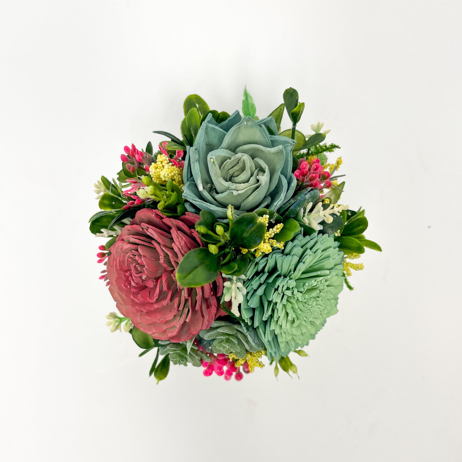 Discover the perfect gift in our Mini Wood Flower Succulent Garden – a tactile wonderland of textures with an uplifting message on the planter. Measuring just right for any space, this miniature masterpiece serves as a heartfelt reminder and makes for an ideal gesture of kindness. Share the joy of nature's charm and positivity with a gift that blooms with love and tranquility, perfect for any occasion.